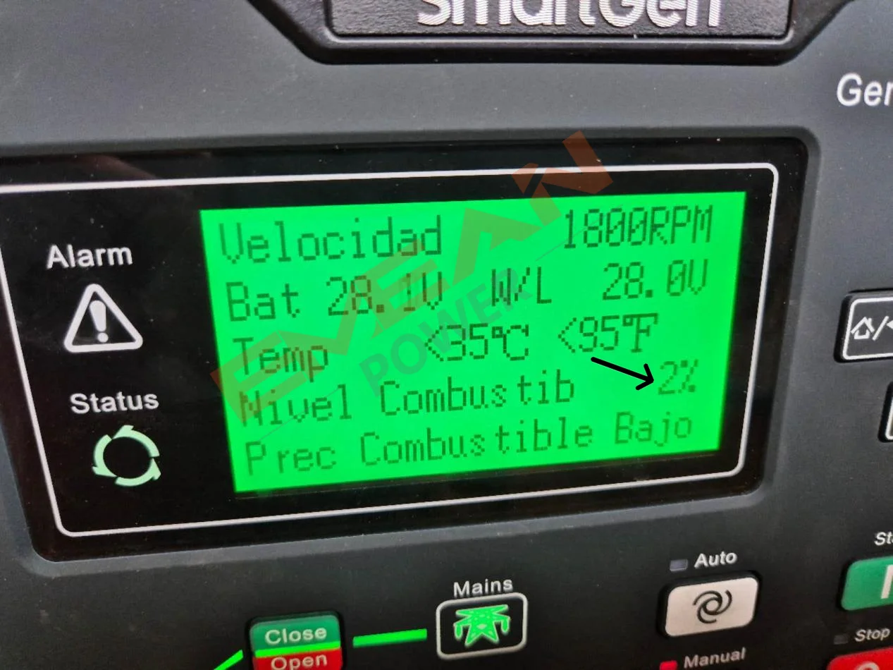 Bila tangki bahan bakar genset diesel Anda penuh, tetapi layar pengontrol memperlihatkan level oli terlalu rendah (misalnya hanya menunjukkan 2%), ini biasanya mengindikasikan adanya masalah pada sensor atau pengaturan.